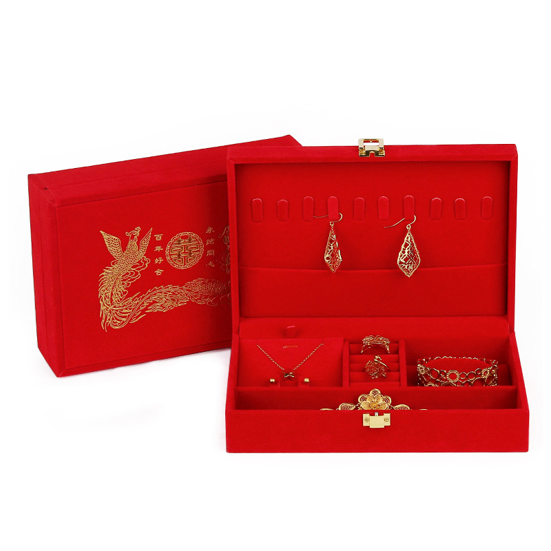Red Velvet High-end Wedding Dowry Jewelry Box Bride Ring Necklace Bracelet Dowry Jewelry Storage Box