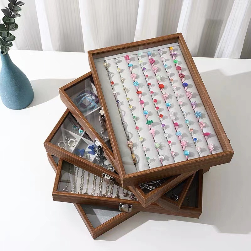 9-Compartment Jewelry Box Velvet Box with Pearl Storage Box Glass Display Box Ring Earrings Earrings Bracelet Necklace