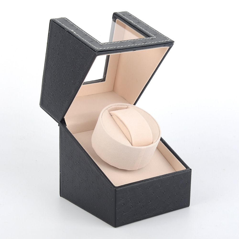 Spot wholesale mechanical watch box Black 1 ostrich pattern beige velvet motor box automatic watch rocker window