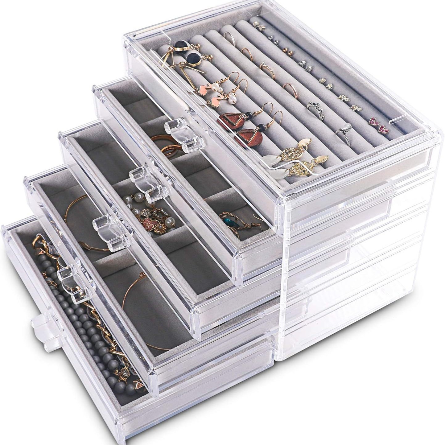 5-Layer Acrylic Jewelry Box Velvet Tray Storage Combination Earrings Necklace Jewelry Box Desktop Drawer-Type Creative Storage