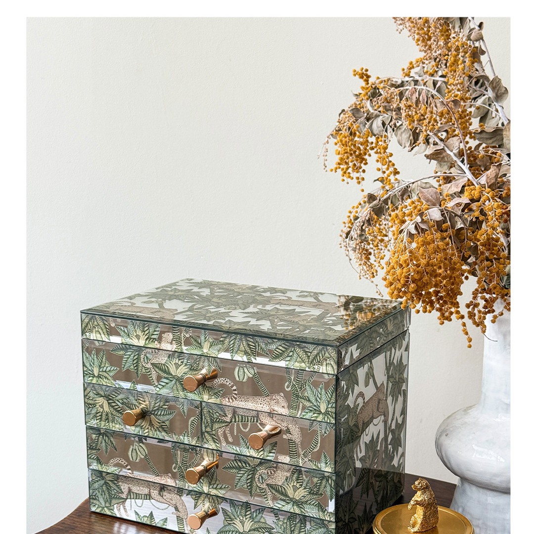 Lamuana Little Leopard Jewelry Box Jewelry Box 4-Layer Mirror Light Luxury Jewelry Box Storage Box Premium Velvet 83731