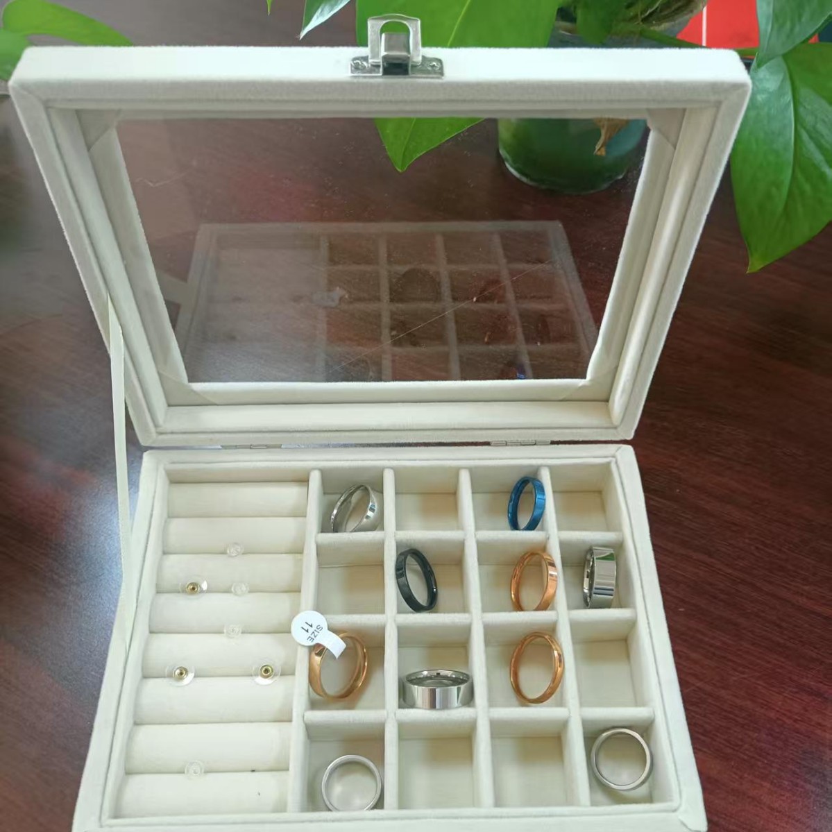 Large Black Velvet Lid Jewelry Tray Bracelet Necklace Ring Earrings Storage Jade Wen Play Plaid Display Jewelry Box
