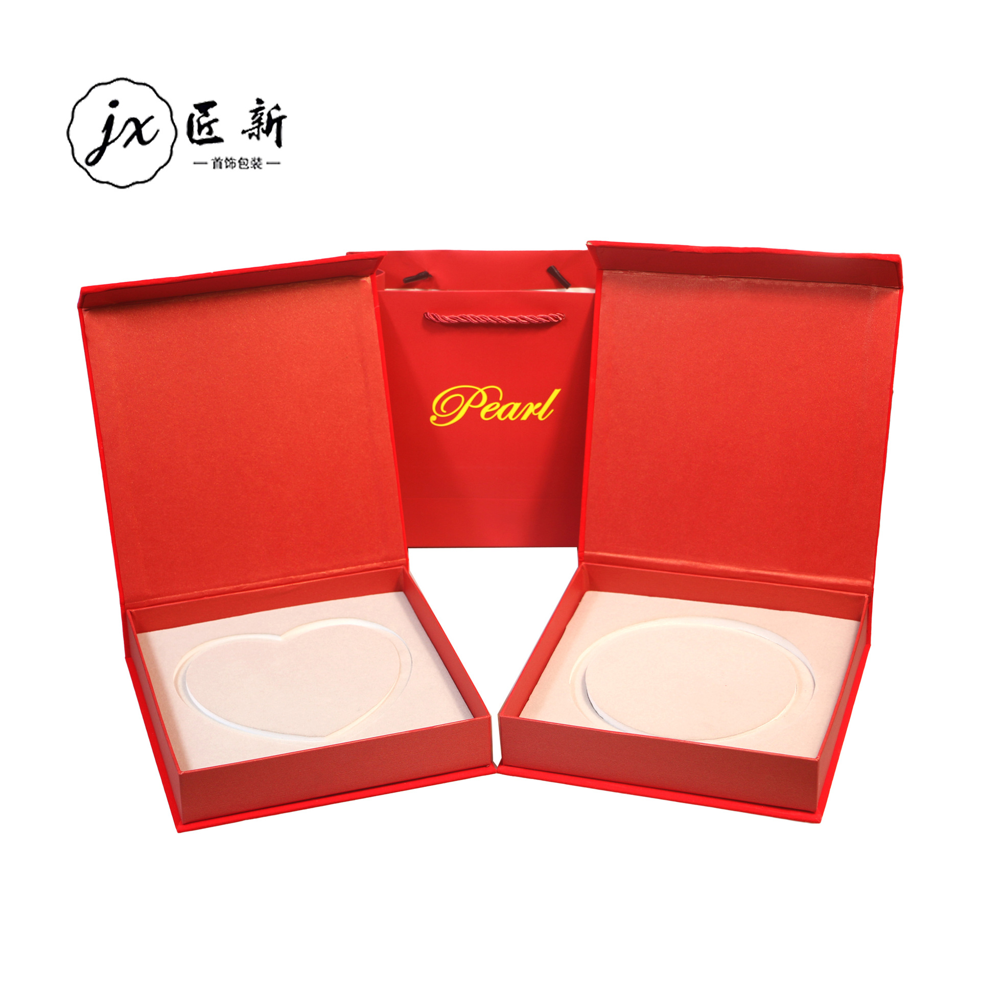 Source factory in stock red velvet pearl necklace box red heart circle gray sponge mother's day jewelry packaging box