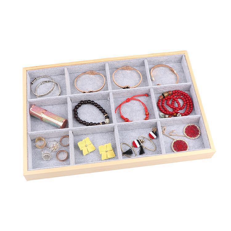 Bamboo Wood Black Velvet Rice Velvet 12-Compartment Storage Box Bracelet Ring Necklace Bracelet Jewelry Display Stand Jewelry Tray