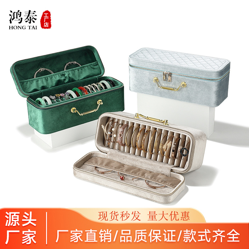 High-End Italian Velvet Double-Layer Jewelry Box Necklace Earrings Earrings Ring Bracelet Storage Desktop Storage Box