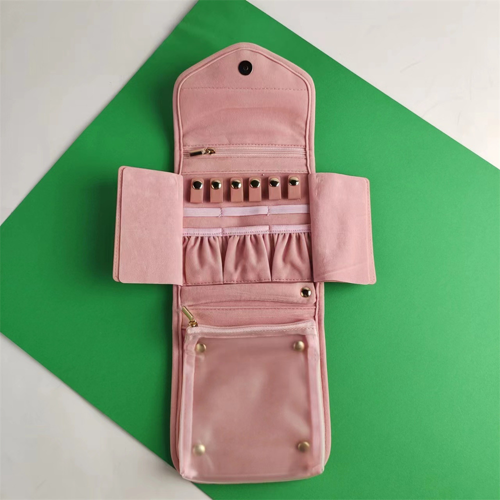 Cross-border hot selling imitation leather velvet jewelry bag portable multi-functional travel jewelry makeup storage bag