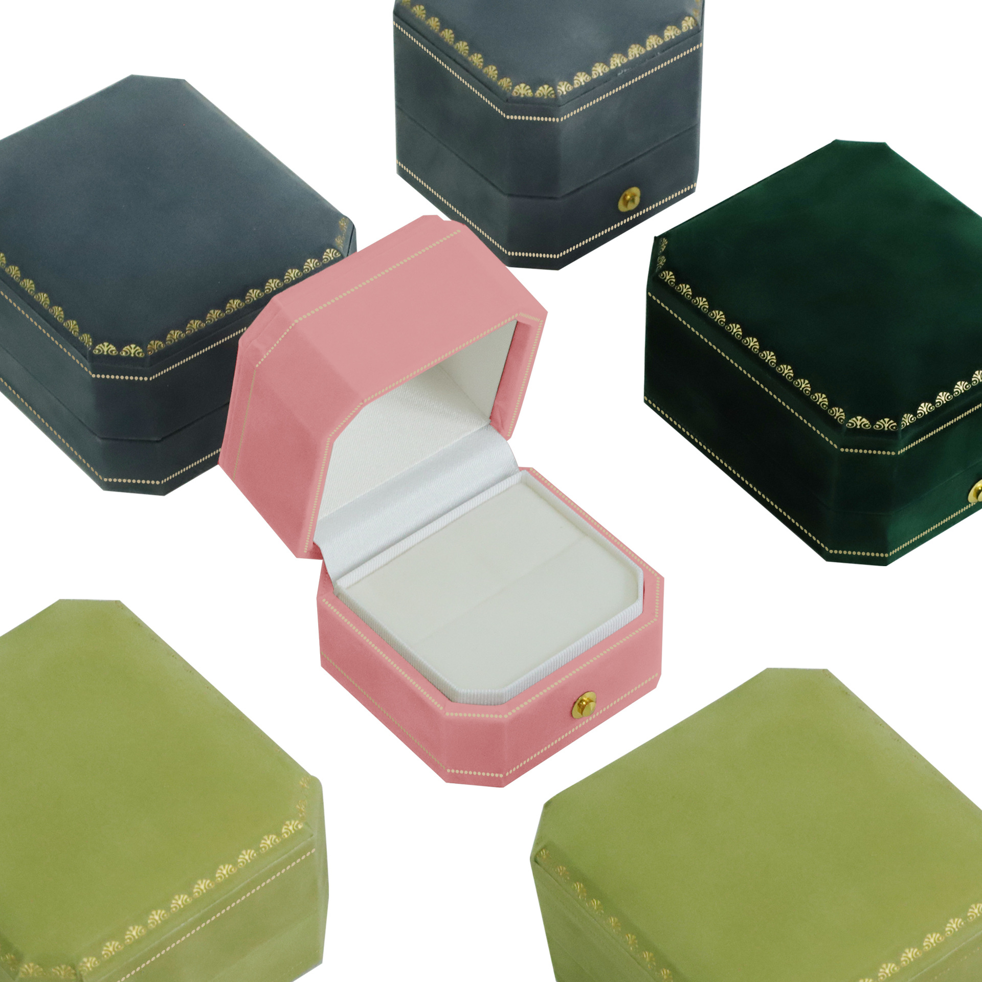 Beveled Octagonal Paper Velvet Printed Gold Buckle Jewelry Box Fashion Jewelry Pearl Chain Box Ring Box High-End Jewelry Box