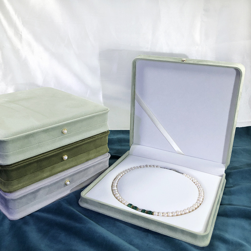 Tight waist pearl jewelry box soft velvet cloth pearl buckle large necklace box mother chain gift jewelry box in stock