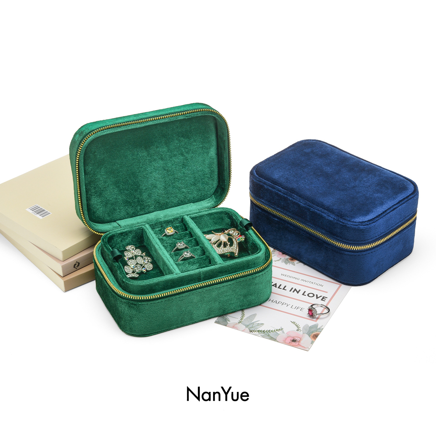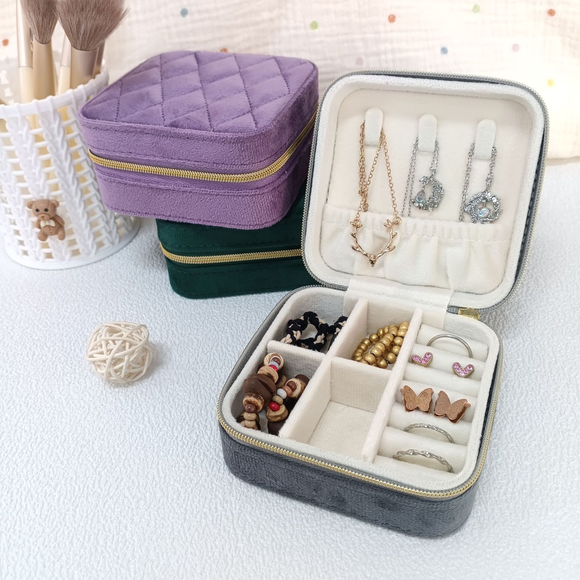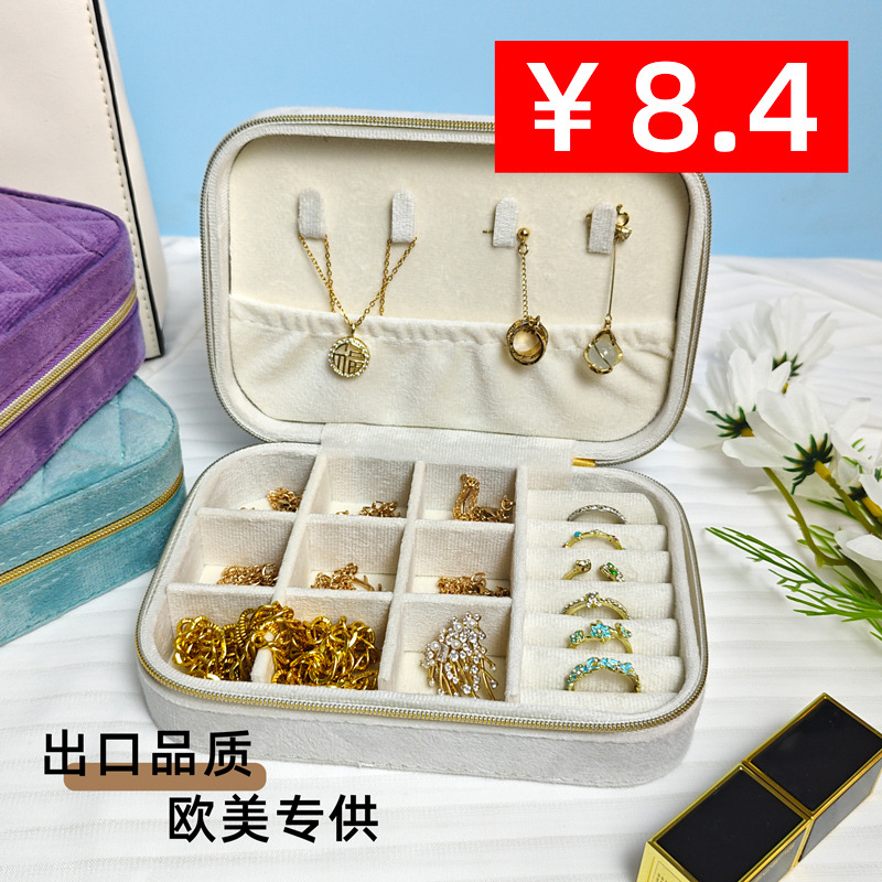 European Retro Velvet Car Line Jewelry Box Earrings Ring Bracelet Partition Storage Box Compact Zipper Jewelry Box