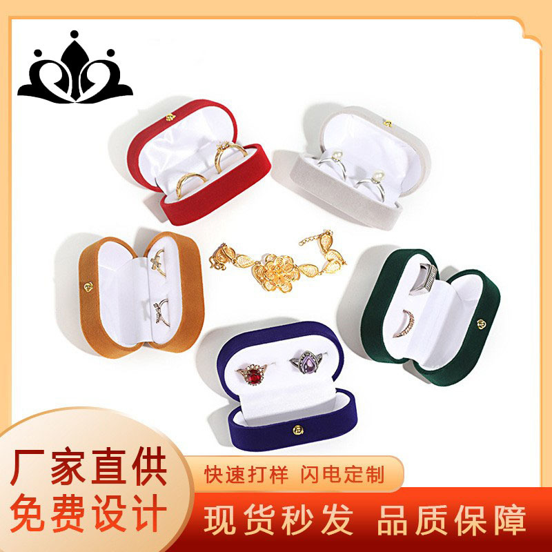 High-End Rounded Corner Double Snap Flip Velvet Jewelry Box Set Box Pendant Ring Bracelet Storage Display Box
