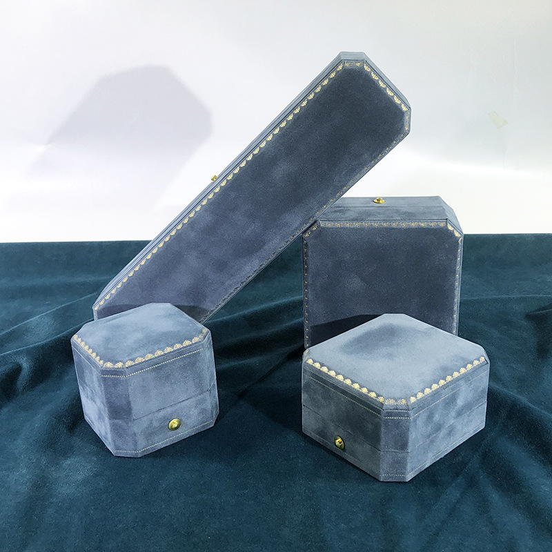 New octagonal encryption velvet bronzing edge flannel jewelry box ring box necklace bracelet box pearl jewelry box