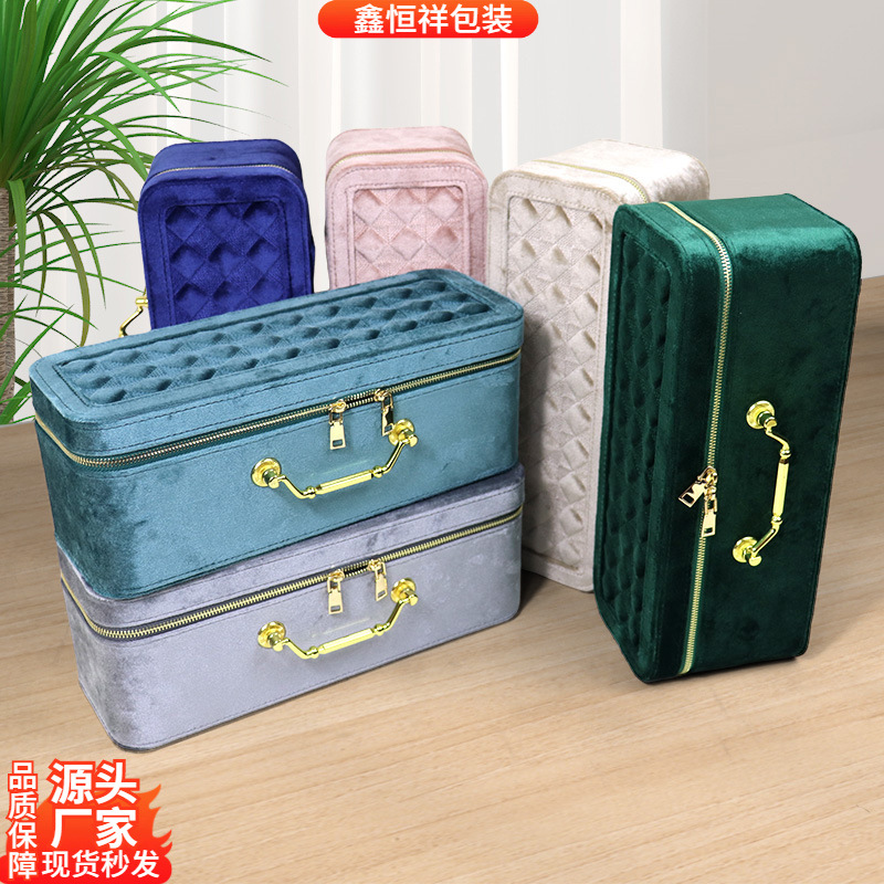 Simple Exquisite Earrings Necklace Ring Jewelry Box Lisi Velvet Portable Jewelry Box Zipper Bag Jewelry Storage Box