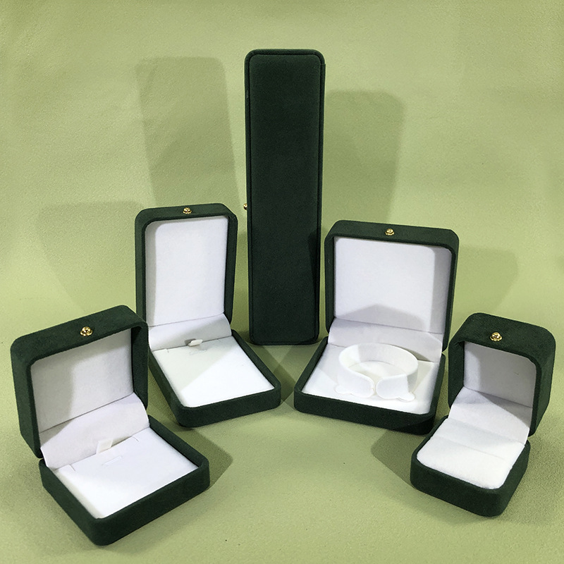 Dark green new gold buckle jewelry box fashion jewelry box in stock velvet ring box necklace box with logo