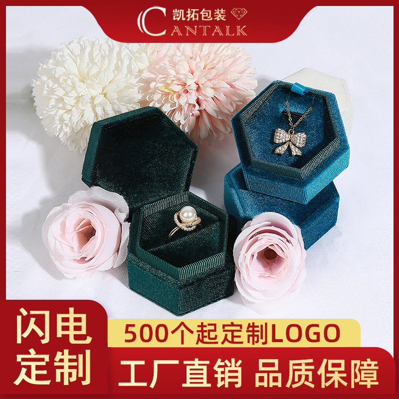 Custom Hexagon Jewelry Box Korean Velvet Ear Nail Box Ring Necklace Box Jewelry Packaging Box Factory Custom logo