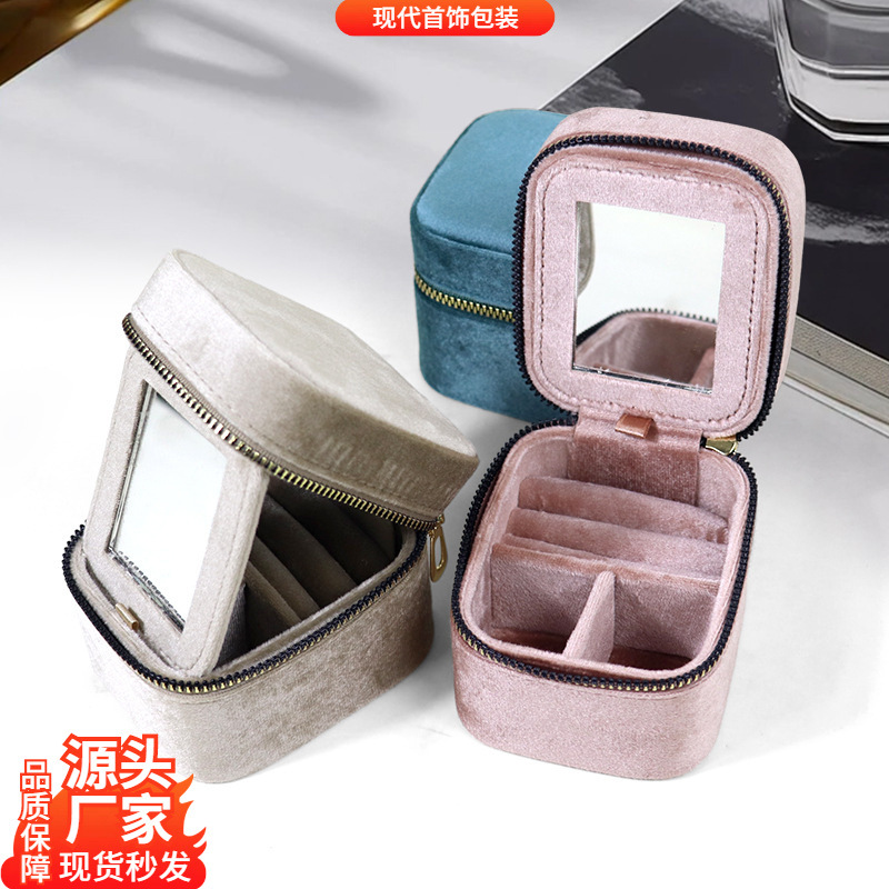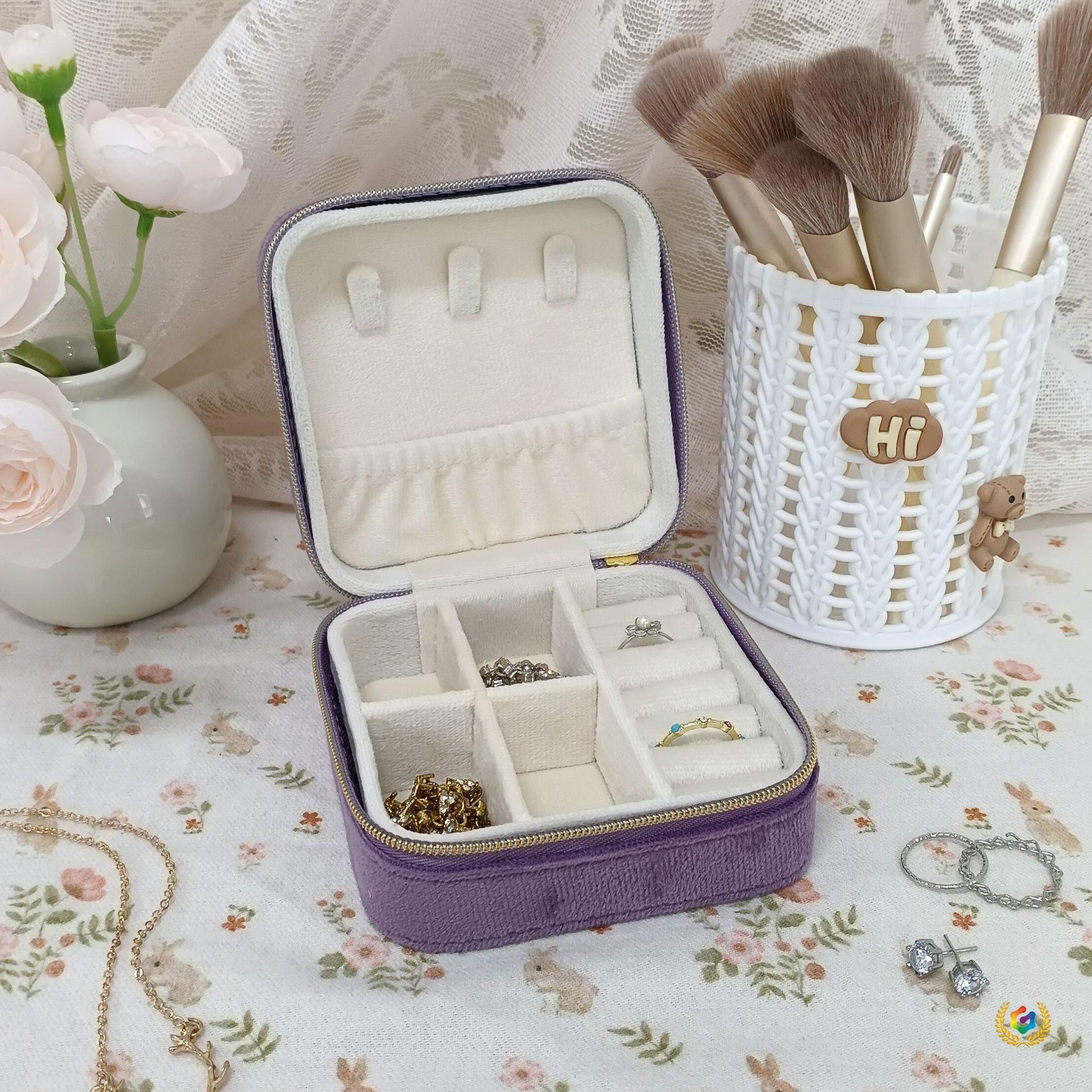 ✅ Light Luxury Velvet Jewelry Box Camping Style Portable Ring Pendant Earrings Storage Box Zipper Closed Dust-Proof Jewelry