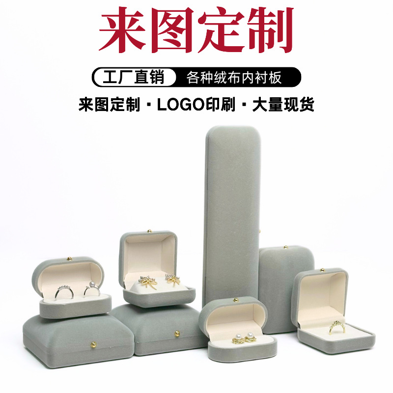 Cross-Border New Velvet Jewelry Box, Earrings, Earrings, Jewelry Storage Box, Rounded Corner Ring, Bracelet, Necklace Packaging Box