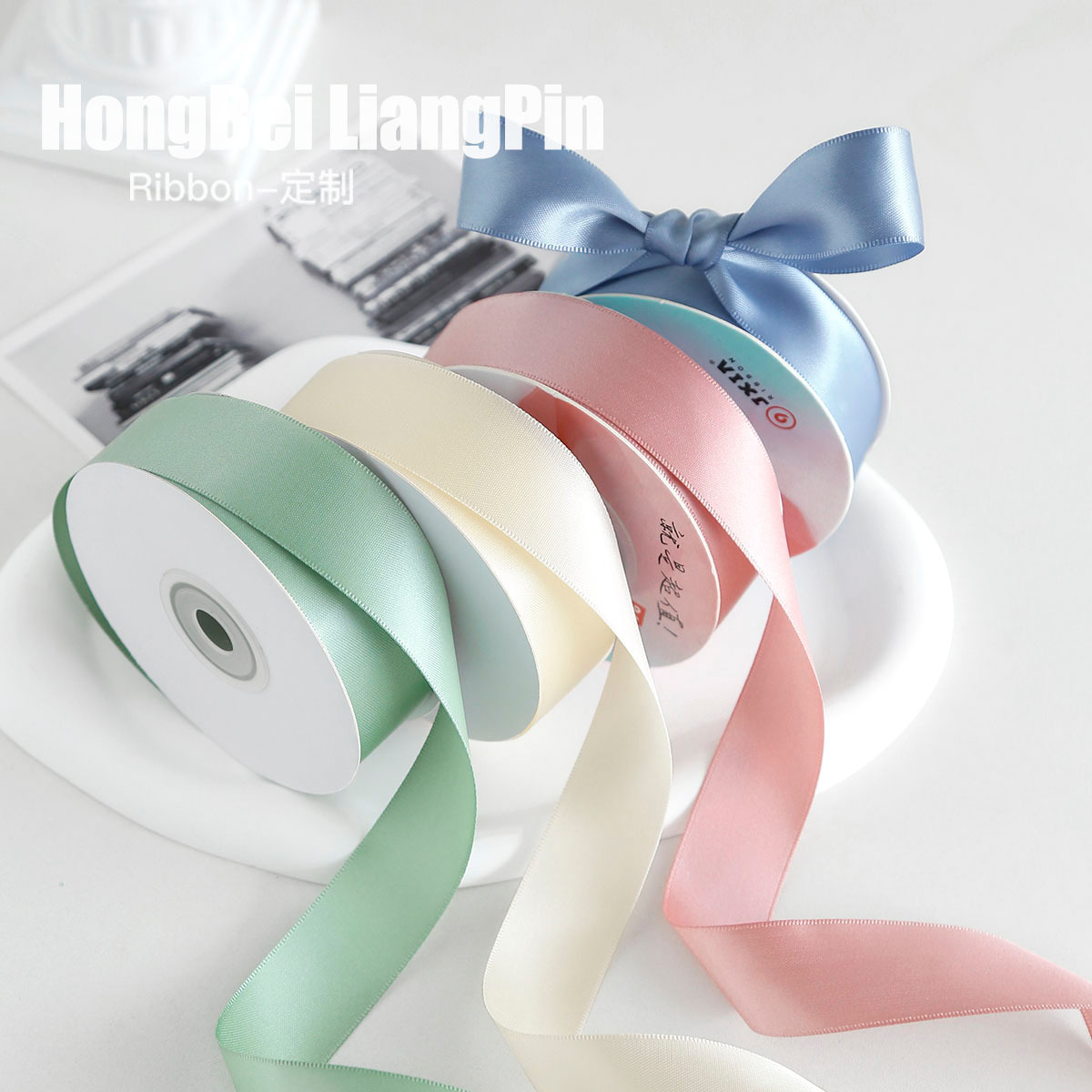 Factory direct 2.5cm double-sided polyester ribbon cake ribbon bouquet hair accessories gift box packaging solid color ribbon