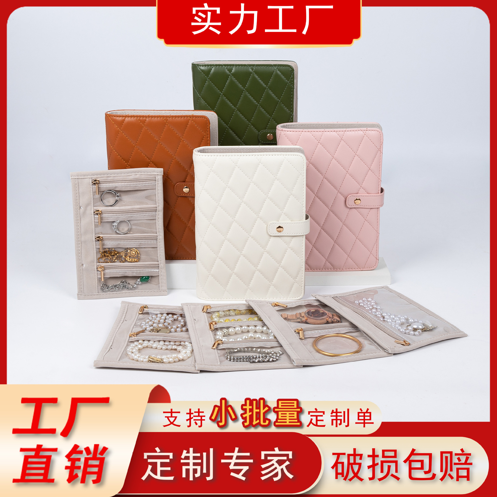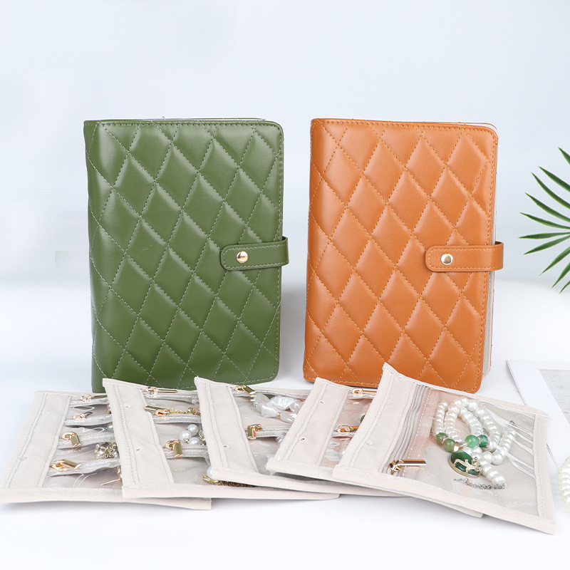 Pu Leather Book-Type Snap Jewelry Cosmetics Bag Velvet Inner Page Multi-Position Bracelet Bag Ring Necklace Portable Jewelry Bag