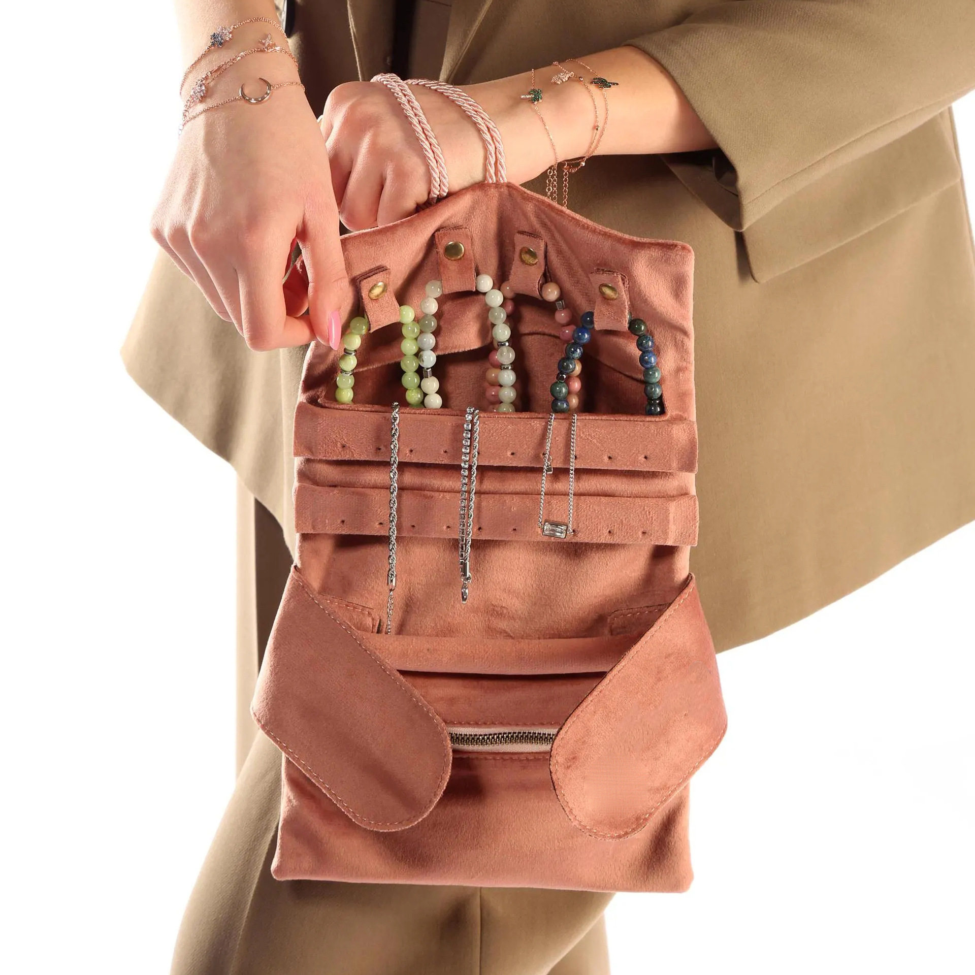 Solid Color Elegant Velvet Jewelry Bag, Portable Earring Necklace Storage Roll Bag, Simple Travel Jewelry Bag