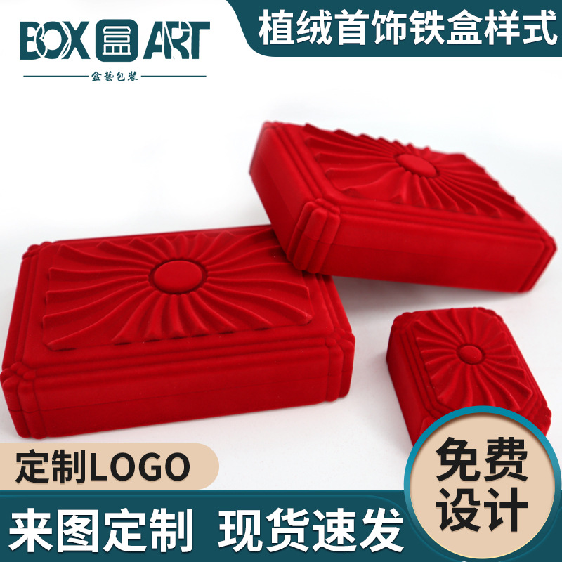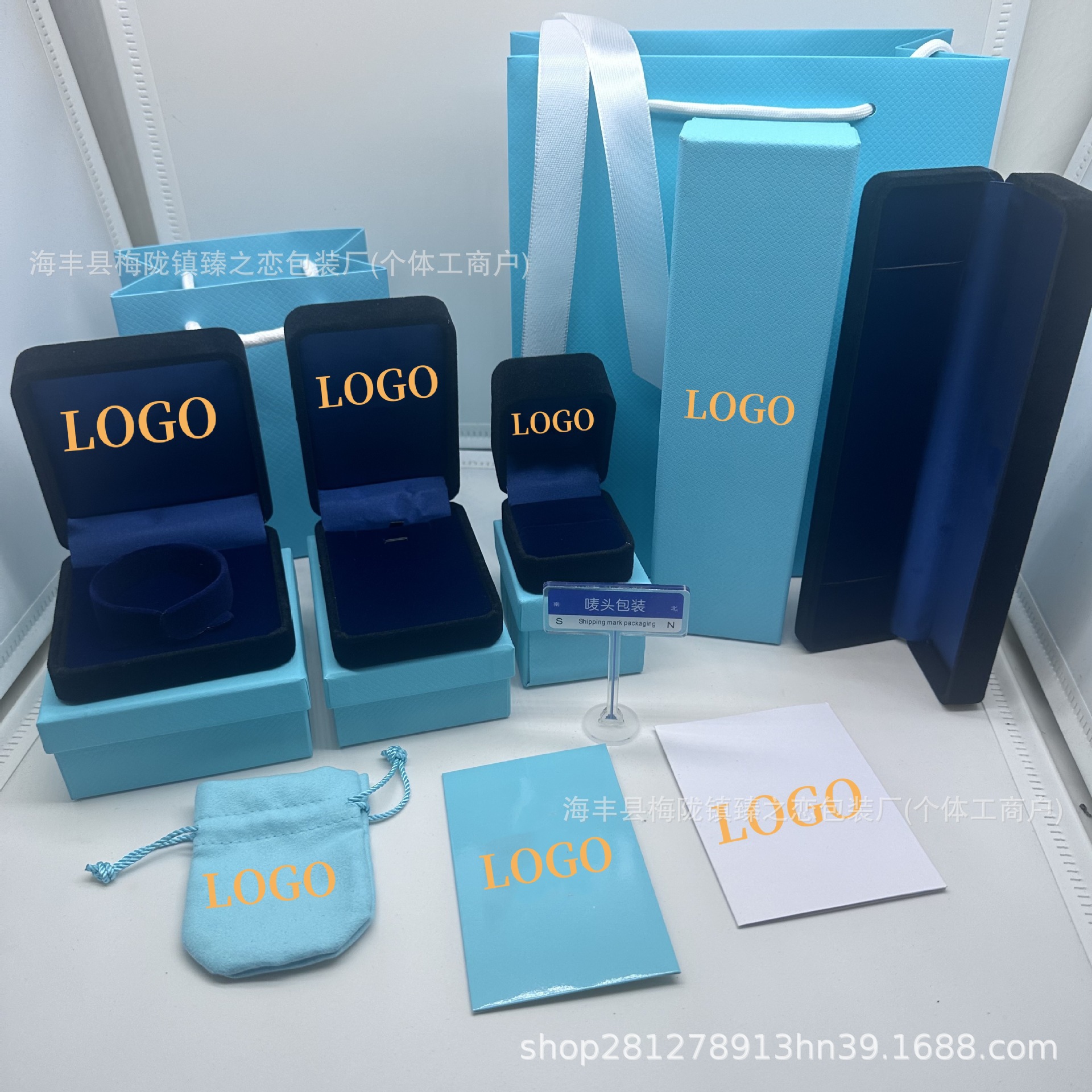 High-End Simple Flocking Cloth Printed Jewelry Box Necklace Earrings Jewelry Pendant Bracelet Storage Box Jewelry Packaging Box