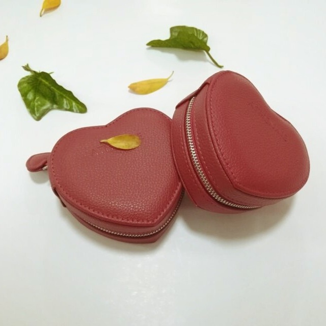 Manufacturers PU leather heart-shaped jewelry box small ring necklace storage box velvet inside logo printed