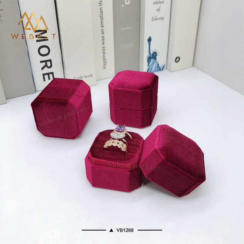 Octagonal velvet ring jewelry box couple double ring jewelry velvet box blue jewelry velvet box necklace box