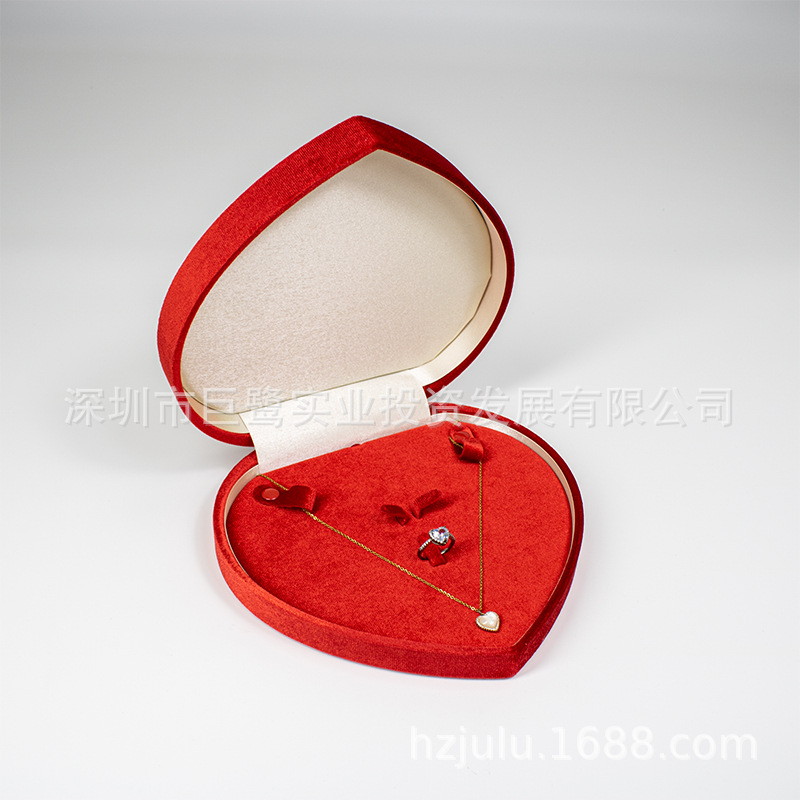 Velvet High-Grade Heart-Shaped Jewelry Set Storage Box Necklace Ring Jewelry Storage Box