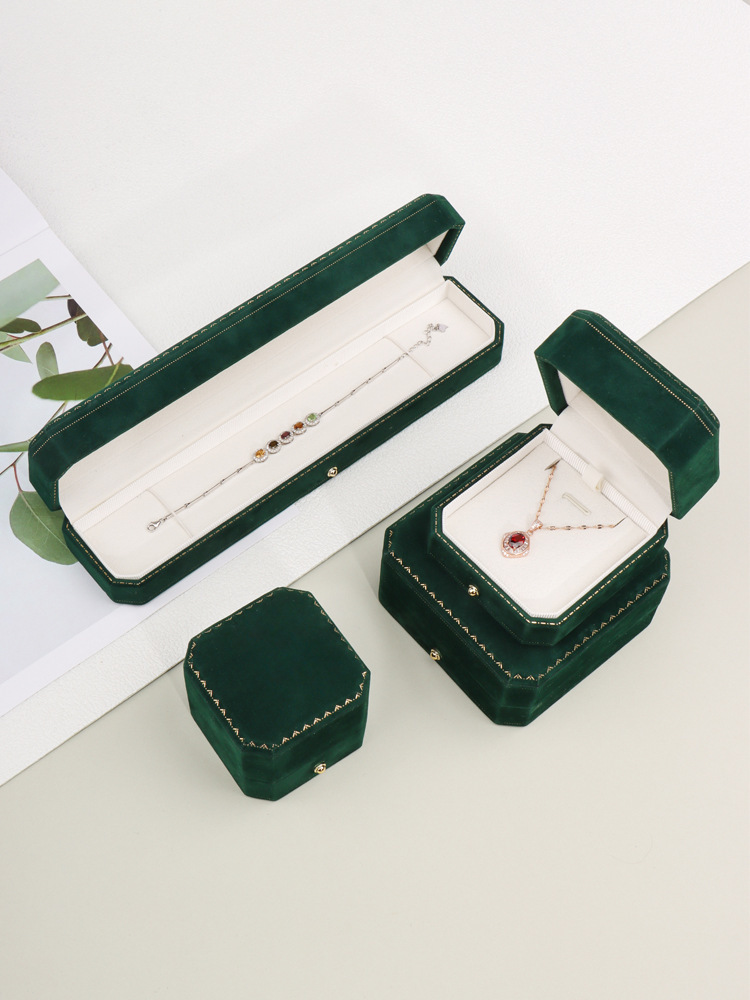 New Multicolor Imported Velvet Jewelry Box Ring Necklace Earrings Bracelet Box Classic Bronzing Diamond Octagonal Box Wholesale