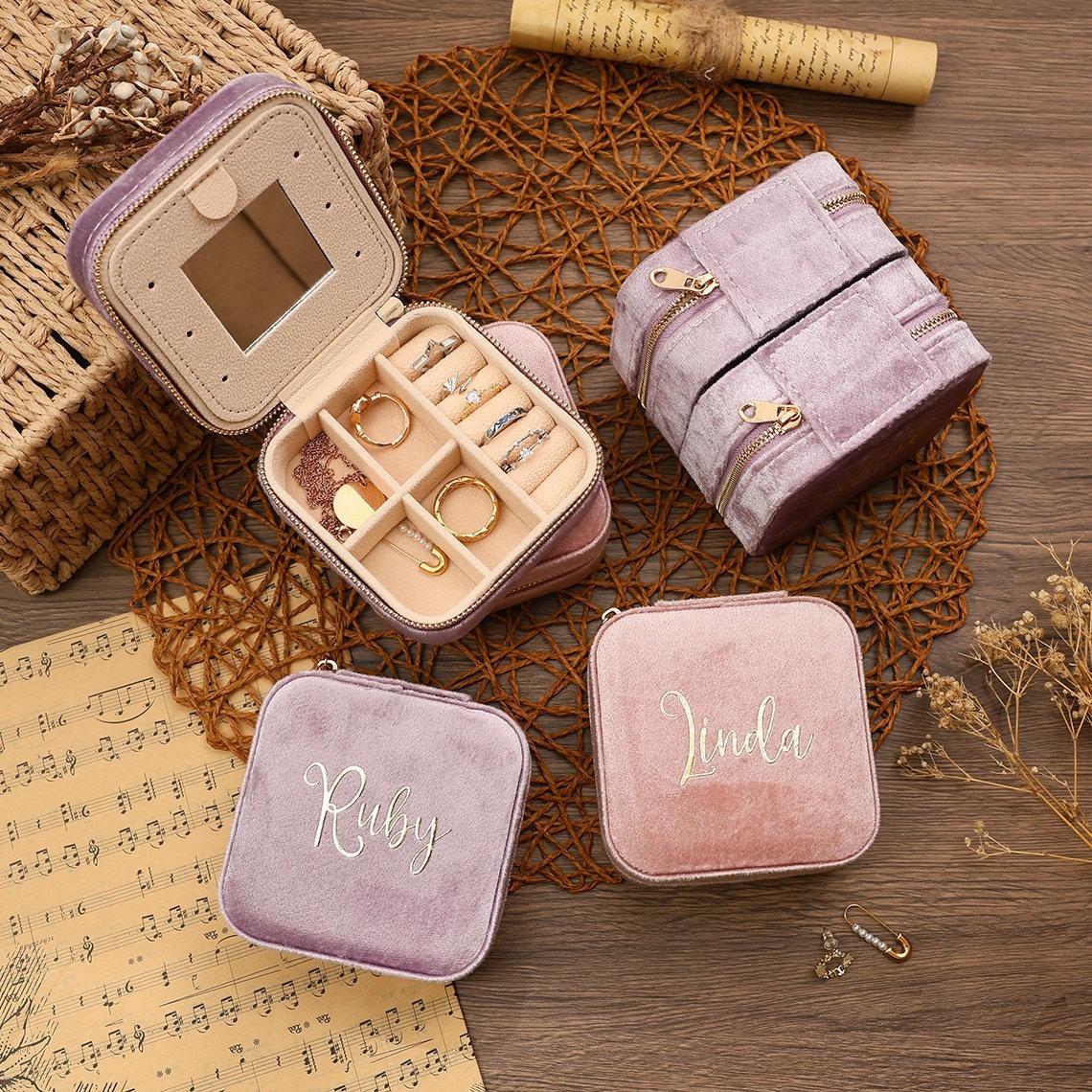 ✅ Cross-Border Jewelry Storage Box, Cute Girls' Ring Jewelry Box, Velvet Compact Portable Jewelry Box
