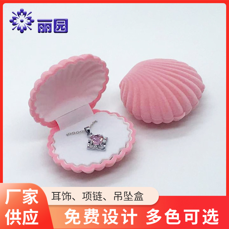 Plastic flocking shell jewelry box vintage girl heart shell stud earrings necklace jewelry storage box velvet gift box