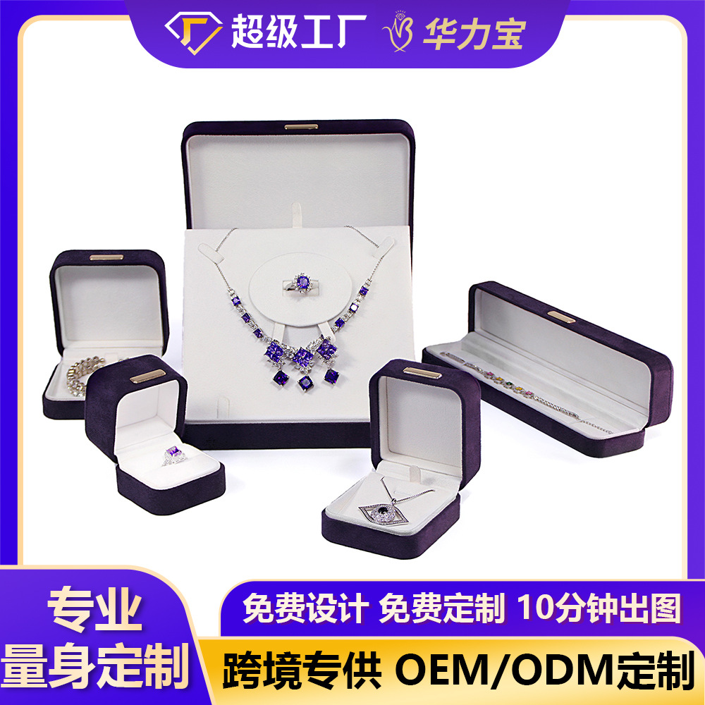 Violet High-Quality Milan Velvet Custom Jewelry Box Ring Pendant Bracelet Bracelet Set Full Series Box