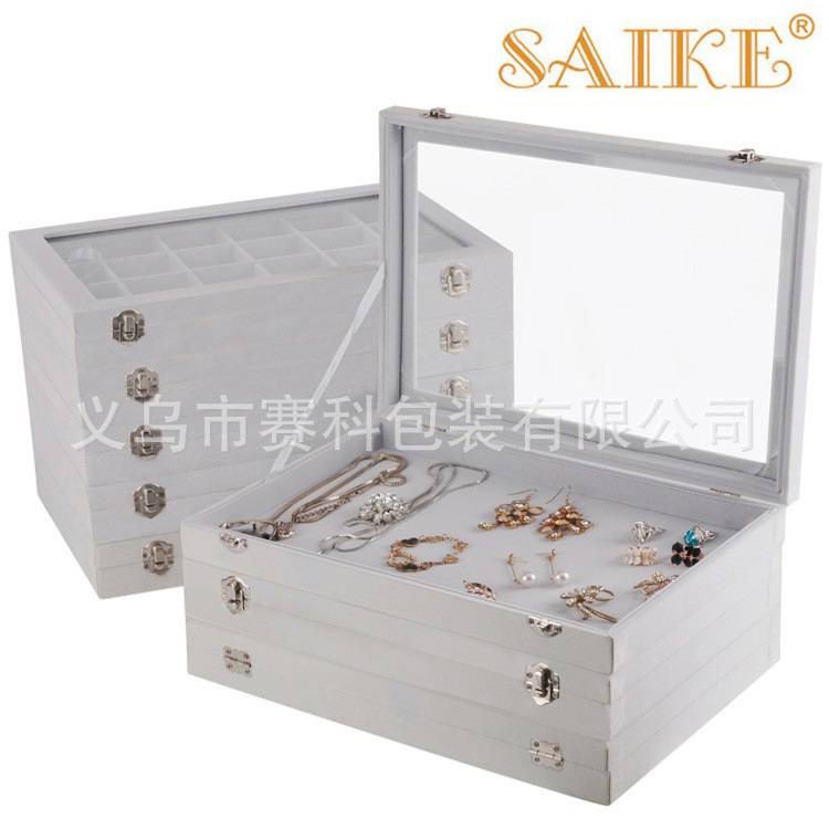 Ready Supply of Gray Velvet Window Ring Necklace Bracelet Pendant Earrings Earrings 12 Gridss 24 Gridss Storage Jewelry Box