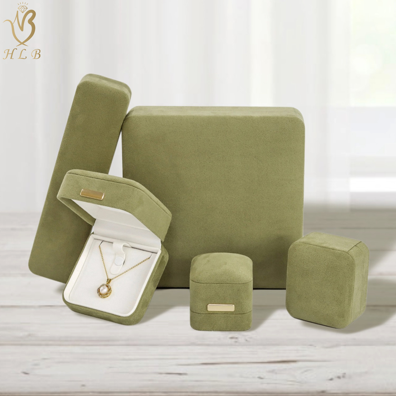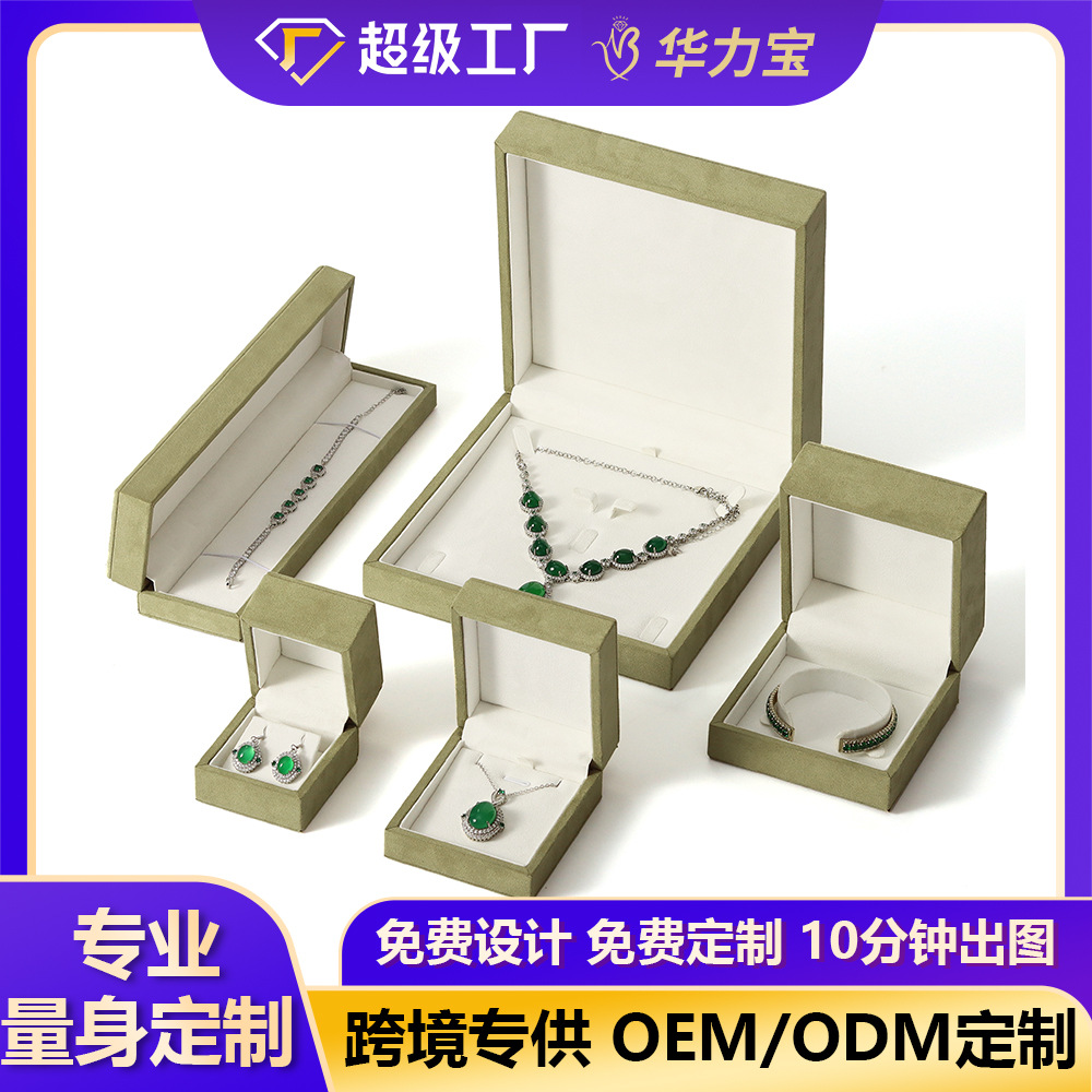 Grass green jewelry packaging box high-grade Milan velvet ring pendant bracelet bracelet suit necklace box large number of in stock