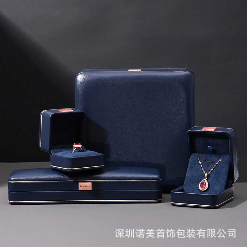 Royal Blue High-End Jewelry Flip-Top Jewelry Box, Ring Box, Necklace Set Box, Leather High-Grade Velvet, Supports Customization