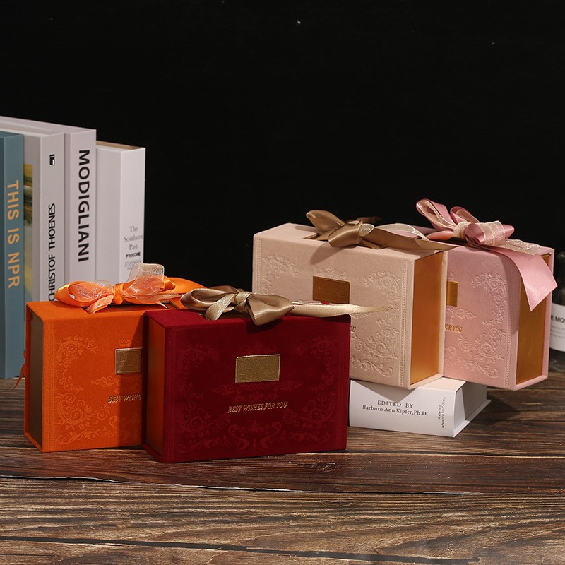 Retro Light Luxury Large Bowknot Gift Box Retro Candy Box Portable Box Velvet Accompanying Gift Box