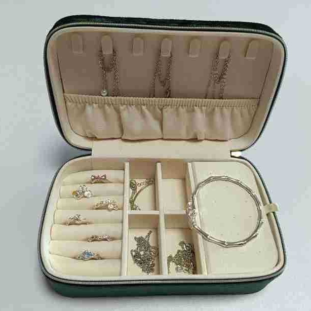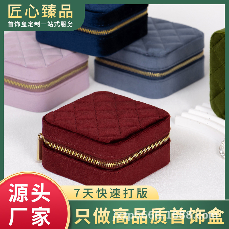 Factory Production Velvet Zipper Jewelry Box Multifunctional Jewelry Storage Box Jewelry Necklace Earrings Pu Storage Box