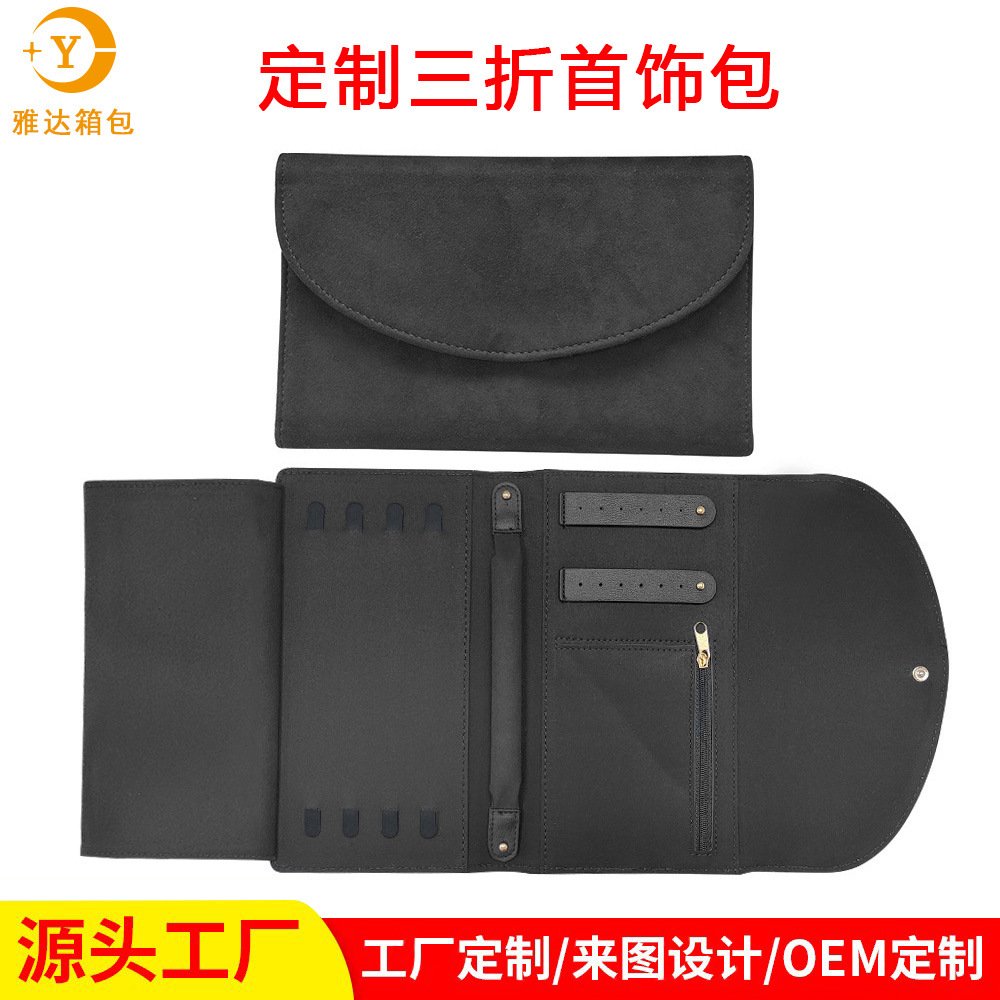 Cross-border hot selling imitation leather velvet jewelry bag portable multi-functional travel jewelry makeup storage bag