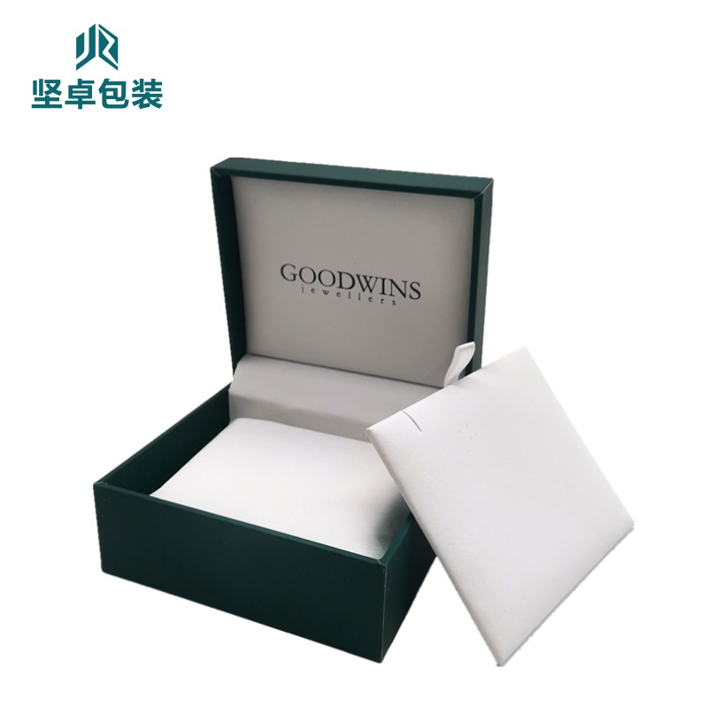 Customized Double Velvet Table Earrings Jewelry Box Filled with Leather Paper Hot Stamping Logo Pendant Necklace Packaging Box Green Plastic Gift Box