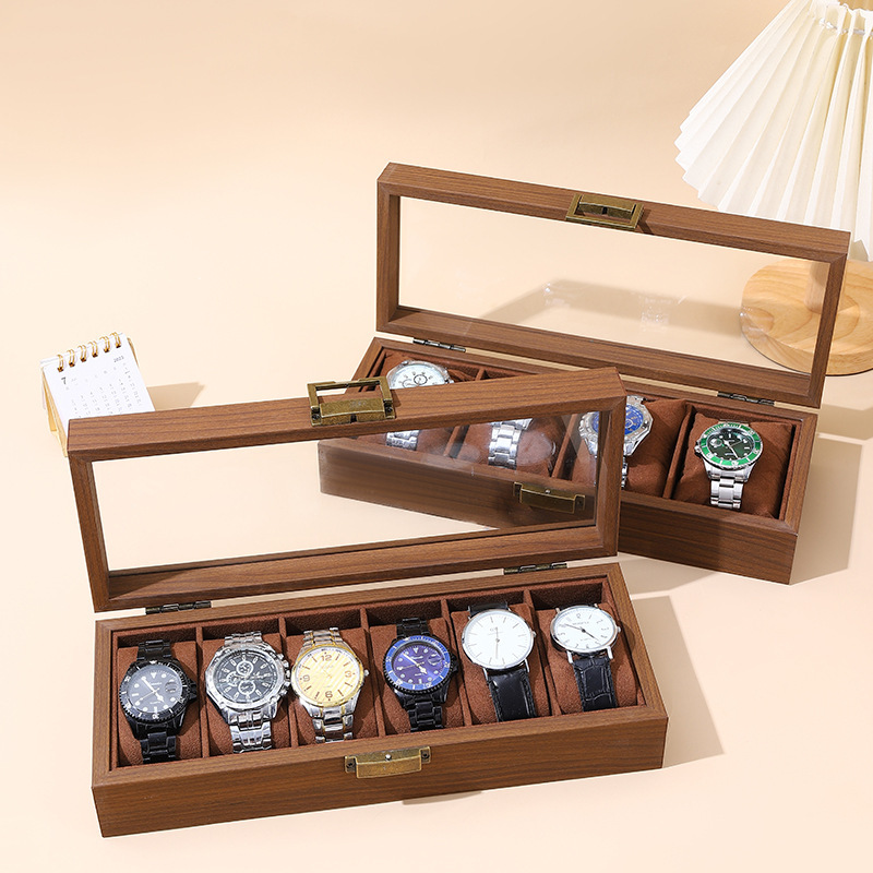 Cross-Border New Flip Watch Box Walnut Wood Grain Jewelry Box Multi-Position Glass Window Display Watch Storage Box