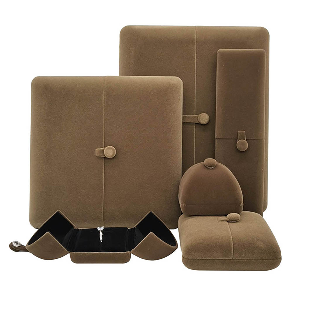 Luxury Brown Jewelry Box Silk Velvet Opposition Thickened Pearl Packaging Box Pendant Necklace Ring Box