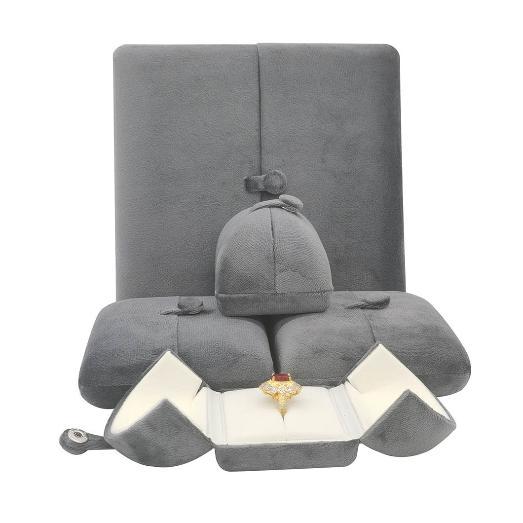 Fashion Grey Jewelry Box Silk Velvet Opposition Thickened Pearl Packaging Box Pendant Necklace Ring Box