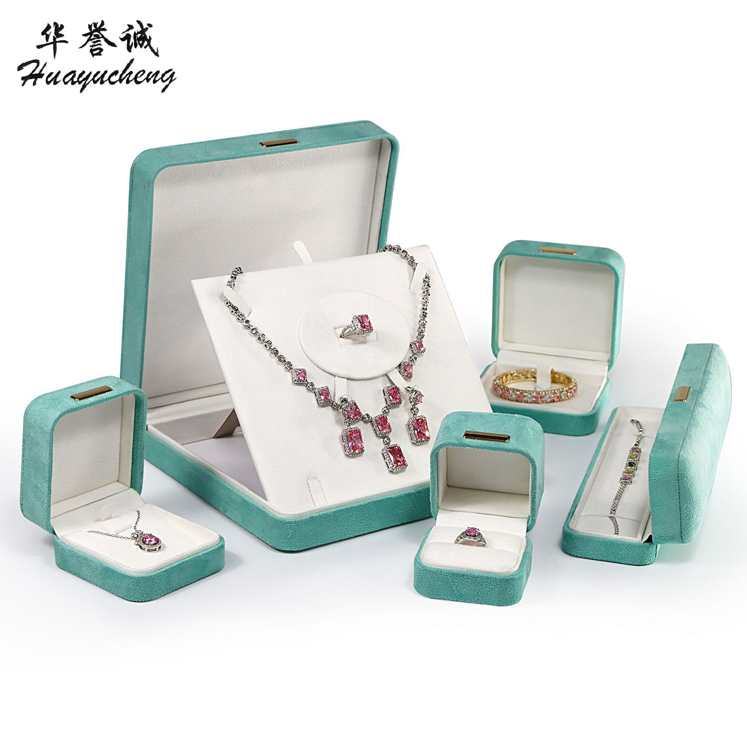 Custom turquoise PU high-grade velvet ring jewelry jewelry box octagonal double open bracelet bracelet jewelry packaging box