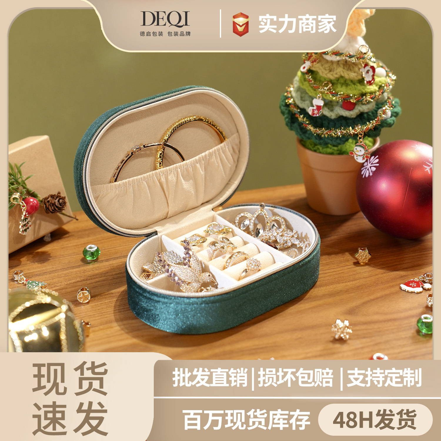 Christmas Velvet Oval Jewelry Box Ring Necklace Bracelet Jewelry Jewelry Box Zipper Velvet Jewelry Box