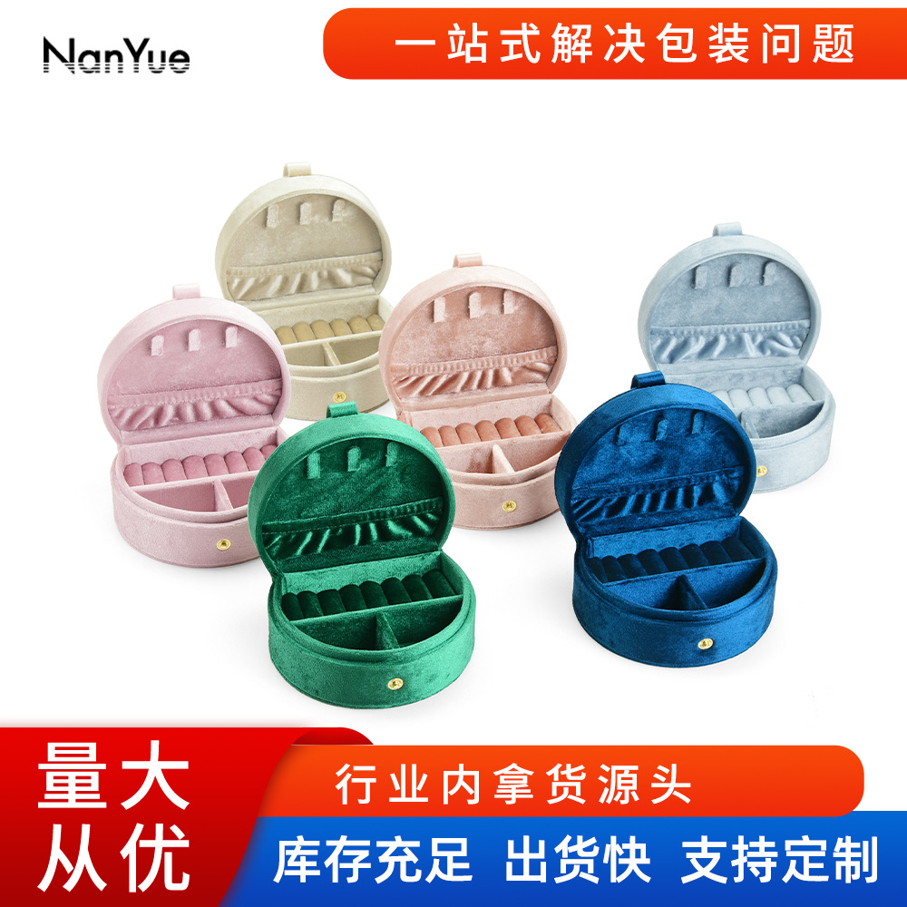 Jewelry Box Portable Velvet Small Round Box Girly Heart Large Capacity Necklace Earrings Earrings Jewelry Storage Box Glued