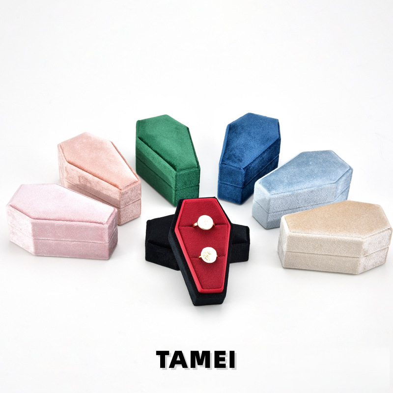 Cross-Border Popular Small Coffin-Shaped High-End Ring Box, Multi-Compartment Velvet Ring Storage Box, Lid and Base Velvet Jewelry Box