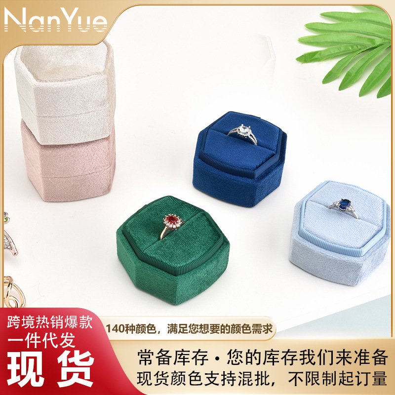 Flip-Top Velvet Round Hexagonal Ring Box, Velvet Ring Box, Necklace Jewelry Box, Couple's Rounded Corner Ring Box