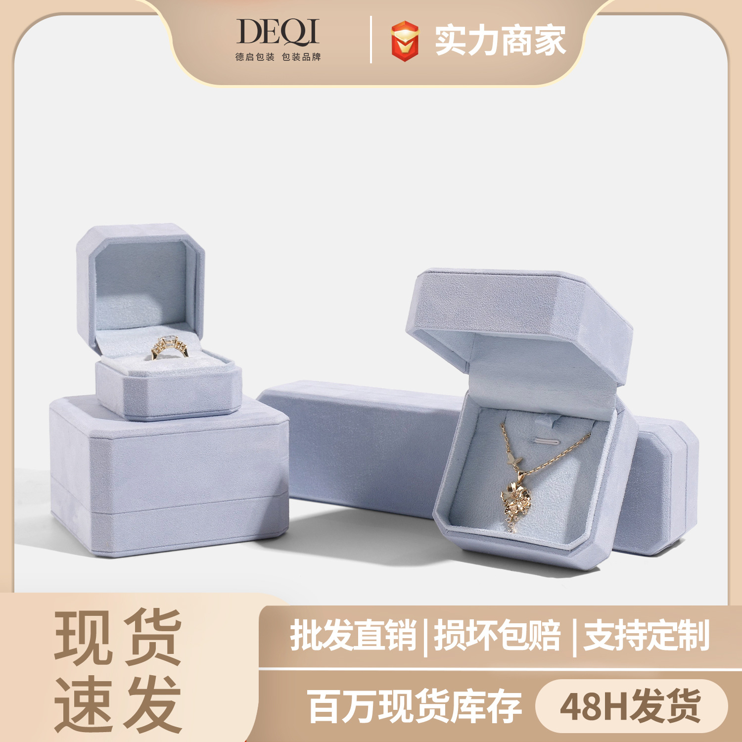 Deqi High-End Velvet Jewelry Box Ring Pendant Necklace Bracelet Bracelet Box Gold Jewelry Packaging Box Storage Box