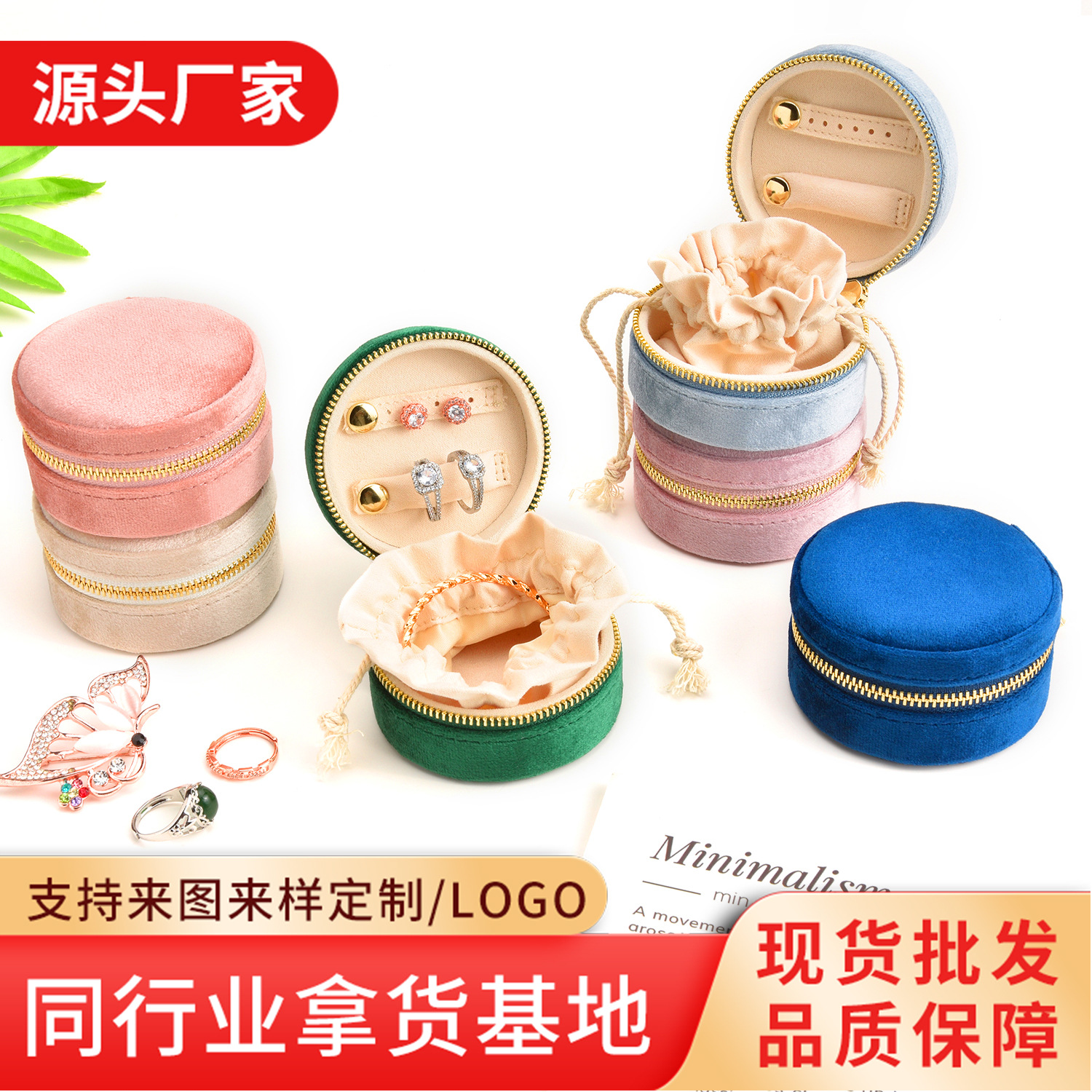 New Velvet Proposal Ring Box Storage Box Portable Round Box High-End Jewelry Storage Box Jewelry Packaging Box