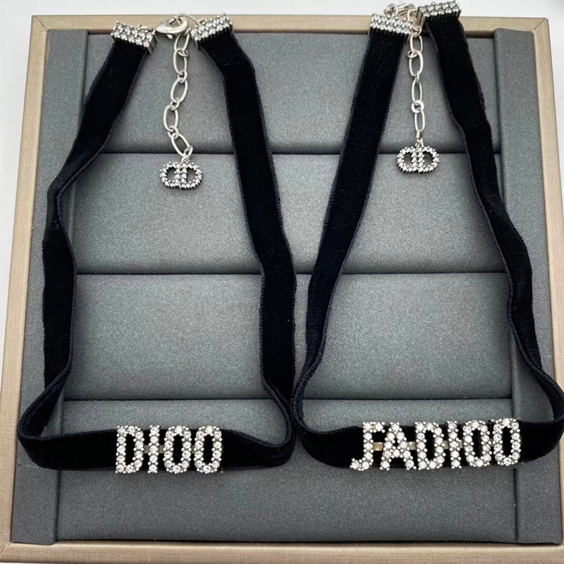 D family new letter clavicle chain webbing chain short rhinestone light luxury niche temperament vintage black velvet neck chain