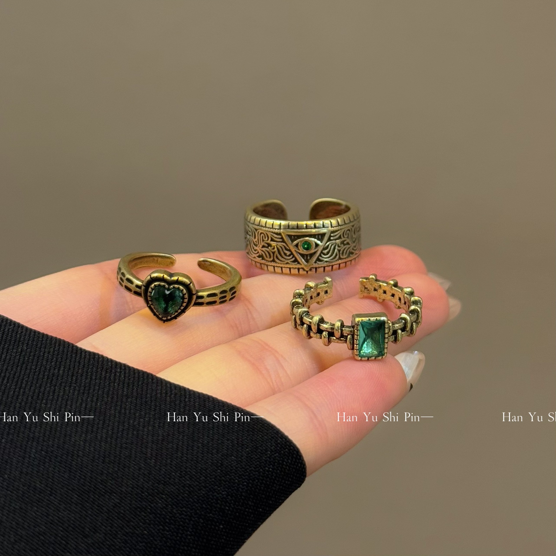 Antique Retro Chain Zircon Stacked Love Geometric Ring Metal Old Style Fashion Personalized Open Ring